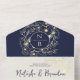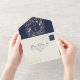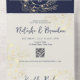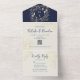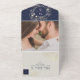Haz que tu boda planee sin esfuerzo con esta elegante invitación de bodas todo en uno en un monograma azul marino boho. Con un sofisticado monograma azul marino con delicados acentos florales en oro, esta invitación es a la vez elegante y funcional. El diseño "todo en uno" incluye una tarjeta RSVP desmontable y una impresionante foto de vuelta para un toque personal. Perfecto para bodas bodas bodas, rústicas o elegantes.