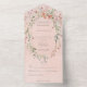 Invitación Todo En Uno Delicados flores silvestres rusticas de Rubor rosa