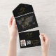 A black destination wedding passport design with gold compass and travel elements. This design is ideal for all Spring, Summer, Fall and Winter destination weddings. An elegant black and gold wedding travel design with passport layout, world map and custom couple photo. A modern destination wedding invitation design with elegant elements. Matching wedding stationery items and other wedding invite formats are also available.