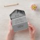 Playa Tropical, destino, blanco y negro, elegante, moderno matrimonio plegado, Boda de código QR todo en una sola invitación. Triplio, juego de presupuesto. Puedes personalizarlo con tus propios detalles.