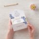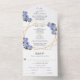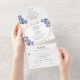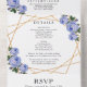 Invitación Todo En Uno Detalles de boda de flores azules geométricas con