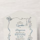 ¿Buscando algo divertido, fácil y lleno de personalidad? Esta invitación de boda todo en uno con una tarjeta postal RSVP desgarradora es la mezcla perfecta de comodidad y encanto. Diseñado con doodles juguetones dibujados a mano y con un enfoque en la sencillez, es ideal para las parejas que desean una forma elegante y sin estrés para invitar a sus huéspedes. No se necesitan sobres o inserciones adicionales, sólo hay que enviarlo por correo con un sello estándar, y los huéspedes pueden enviar fácilmente su respuesta. Incluso puede solicitarlos individualmente, agregando nombres y direcciones para un toque más personal. Un poco gracioso, un poco retro, y totalmente en tendencia, este diseño marca la pauta para una celebración tranquila, llena de alegría. Los ilustraciones sueltos y al estilo de boceto desprenden un ambiente creativo y despreocupado, perfecto para las parejas que quieren que su boda se sienta más como un fiesta que como un asunto formal. En resumen: es caprichosa, sincera y sin esfuerzo genial — una celebración de papel llena de amor, risa y buenos tiempos por venir.