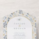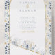 Esta elegante suite nupcial presenta delicados diseños florales y folclóricos en una polvorienta combinación de colores azules y dorados para una temática boda cohesionada e impresionante. La invitación "todo en uno" y la tarjeta RSVP que se muestra aquí muestran un dulce estampado floral y arcos de moda que le dan un toque de romanticismo y sofisticación al conjunto. Perfecto para parejas que buscan un diseño atemporal y hermoso para su día especial. Agregue los detalles de evento necesarios utilizando la plantilla proporcionada. Busque ID1045 para ver otros productos en este conjunto de diseño boda.