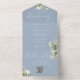 Invitación Todo En Uno Dusty Blue Greenery Código QR Boda Monograma