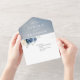 Invitación a la boda con flores de un azul oscuro, con un elegante ramo de azul marino, azul real, blanco , dorado, marfil de champán, rosa de color rubor , flores de ranunculus y hojas de eucalipto verde salado y elegante ramo de acuarela. Comuníquese conmigo para obtener ayuda sobre la personalización o si necesita cualquier otro producto con este diseño.