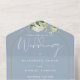 Invitación Todo En Uno Dusty Blue QR Code Gold Arch Greenery Boda