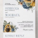 Invitación Todo En Uno Dusty Blue Roses Sunflowers QR Code Wedding