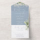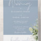 Invitación Todo En Uno Dusty Blue String Luces Verdor Monograma Boda
