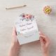 Estas invitaciones nupciales presentan un moderno diseño floral de acuarela con flores polvorientas de color malva y melocotón rosado, hojas verdes y follaje. Personaliza tu texto. También se dispone de material de papelería de correspondencia.