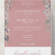 Todo ello en una invitación a la boda, con una hermosa cascada de vegetación floral, una tipografía elegante y iniciales en monograma sobre un polvoriento fondo rosa. La invitación incluye una tarjeta RSVP perforada con el código QR de su sitio web boda y detalles. Diseñado por Thisisnotme©