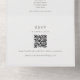 This all-in-one wedding invitation features a refined editorial layout with bold couple names, a detachable RSVP card, and a built-in QR code for easy online responses or wedding website access. The minimalist envelope design includes a subtle ampersand detail for a cohesive, high-end look.