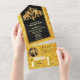 Invitación Todo En Uno elefantes indios oro damasco negro hindú hindú