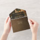 This beautiful design evokes old world charm and elegance, and is perfect for the couple who love classic fine art. This luxurious floral still life was painted in 1790 by the Dutch artist Paul Theodor van Brussel, and features roses, tulips, iris, peonies and narcissi in a terracotta urn. It is painted in warm, rich Earth tones and includes a glowing faux gold border and opaque label. This all-in-one format includes a bonus tearaway RSVP card.