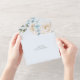 This All-In-One wedding invitation features an elegant soft blue and ivory floral design on a soft blue background, blending timeless romance with refined simplicity. Thoughtfully arranged with ceremony details, RSVP, and additional information in one beautifully coordinated layout, it offers both style and convenience. Perfect for a classic, garden, or romantic celebration, this invitation sets a graceful tone for your special day. Simply address the invitation, fold the back flap and seal with the included clear stickers. Once your guests receive the pre-addressed invitation they simply tear off the perforated RSVP card and drop it in the mail.