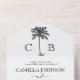 This minimalist tropical green wedding invitation is a perfect choice for a modern classic wedding, a simple formal wedding, or an elegant botanical garden wedding with a tropical ambiance. The wedding ceremony is elegant and sophisticated, but at the same time, simple and with a rustic touch. It features your monogrammed initials and a beautiful illustration of a tropical palm tree on the top. Your event details are shown below in a mix of modern script and classic font. You can easily customize this template by clicking on the ´´ Personalize this template´´ button and writing your own details. You can also customize the background color and RSVP message by clicking the ´´Edit using design tool´´ button. The all-in-one wedding invitation comes with an RSVP card, your return address, and your wedding stamper.