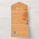 Contemporáneo, simple, código qr, terracota, capricho, naranja quemado, otoño, moderno, elegante Boda todo en una sola invitación. Caligrafía triple de árbol de aves, invitaciones nupciales mínimas, simples, únicas, modernas. Personalizar con sus detalles. Orden a tiempo para evitar una decepción.