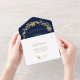 Invitación Todo En Uno Elegante arco Boda de la Marina Azul de Oro