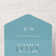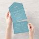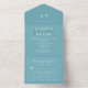 Invitación Todo En Uno Elegante azul retro simple con Boda monograma