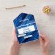 Esta elegante invitación combina hermosamente sofisticación y energía, lo que la convierte en la elección perfecta para una celebración de Bar Mitzvah. El fondo presenta una textura impresionante que evoca el movimiento calmante de las olas del océano, mientras que la paleta de colores azul y blanco complementa perfectamente la ocasión. Con su tema inspirado en el surf, el océano, la playa o el verano, este diseño agrega un toque de diversión y elegancia al día especial.