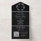 Invitación Todo En Uno Elegante Black Script Moderno Único RSVP QR Code