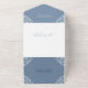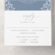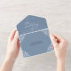 Este elegante azul polvoriento vintage, todo en una sola invitación a la boda, incluye tu invitación en la parte superior con "el boda de" en un guión moderno de caligrafía y una postal de rsvp desgarradora en la parte inferior. Es perfecto para un boda elegante, vintage o clásico.