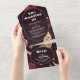 Invitación Todo En Uno Elegante Boda Celestial de Oro Borgoña