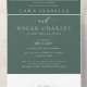 Con una tipografía clásica y elegante, esta invitación formal a la boda marca el tono para un boda atemporal. El elegante fondo verde sabio se puede cambiar haciendo clic en "personalizar más lejos". Perfecto para un boda de otoño. Hay mucho espacio para todos los detalles del boda y la recepción y la tarjeta RSVP desmontable se puede enviar como postal.