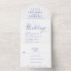 Invitación Todo En Uno Elegante Boda de caligrafía azul y blanca