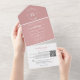 Invitación Todo En Uno Elegante Boda de código QR de monograma rosa con p