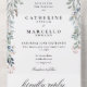 Todo ello en una sola invitación con una hermosa cascada de vegetación floral, tipografía elegante e iniciales de monograma. La invitación incluye una tarjeta RSVP perforada con el código QR de su sitio web boda y detalles. Diseñado por Thisisnotme©