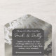 Un diseño de bodas sencillo pero elegante con un patrón de encaje negro con fuentes sofisticadas.