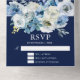 Elegantes rosas azules y blancas decoran esta hermosa invitación floral a la boda de invierno. La invitación a la moda se acentúa con flores color bonito índigo acuático y un bonito estribo botánico amarillo claro. Invitación moderna por la noche con textos blancos clásicos. La tarjeta RSVP está incluida para una compra sencilla.