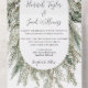 Esta boda de invierno de pino, todo en una sola invitación, es perfecto para unas vacaciones elegantes o una boda de invierno. El diseño presenta hermosas flores blancas de color agua con conos de pino, y vegetación forestal en tonos blancos y marrones y verdes. Este es un esquema de color perfecto para una boda de invierno. Haga que esta invitación sea suya incluyendo sus nombres y todos los detalles de su boda. Para una mayor personalización, utilice la herramienta de diseño avanzada para modificar esta plantilla.