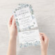 Invitación Todo En Uno Elegante Boda de marco floral azul turbio