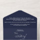 Invitación Todo En Uno Elegante Boda de Moda simple de la marina azul bla