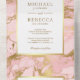 Disfrute de su estancia en esta elegante invitación de boda con un hermoso diseño de mármol y falsos bordes de Relieve metalizado dorado con una tarjeta postal RSVP desmontable. Simplemente agregue los detalles de su evento en esta plantilla fácil de usar para convertirla en una invitación única.