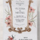 Elegante y un poco malvado todo en invitaciones de una boda que incluyen la información del boda y la postal RSVP que tus invitados desgarran y envían. No se necesitan sobres. Dispone de un espejo ornamentado con flores, plumas y cuernos. Un pequeño vestido negro con goteo de acuarela. Colores de bronceado, negros, durazno sobre un fondo blanco de nieve. ¡Maravilloso para un elegante Gótico, Fantasía, Halloween o Día del Boda muerto! Necesita ayuda con el diseño, sólo envíeme un correo electrónico a tkatz@me.com