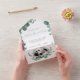 RSVP con opciones de menú para carne, pollo y vegetarianos y varias líneas para que el nombre de tu huésped sea adecuado y para que indiquen claramente las opciones de su entrada. Imagen Azul Mint Neo Green Todo En Un RSVP desgarrando El Oro Resumen Marco Geométrico Angular Tu Tarjeta De Foto Boda. Incluye 2 fotos. Eucalyptus Floral Boho Silvery Blue Wreath deja invitaciones de boda romántica Boda. Incluye una tarjeta postal fácilmente desmontable RSVP. Ideal para los temas de Boho Bohemian o Woodsy Forest Boda.