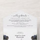 Muestre todos los detalles de su boda con esta elegante invitación de boda "Todo en Uno", que presenta un fondo blanco clásico, caligrafía negra y letra cursiva y una variedad de rosas florales de color azul marino y blanco con acentos de oro falso y follaje verde. Los invitados pueden arrancar fácilmente la tarjeta postal de RSVP y enviarla por correo. Edite fácilmente toda la información con los detalles de su boda utilizando la plantilla proporcionada. Invitaciones de boda asequibles todo en uno que dejarán a sus invitados asombrados.