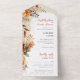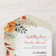 Celebra tu amor con estilo con esta invitación de bodas botánicas "todo en uno" de otoño con RSVP incluido y con un impresionante ilustracion floral acuático en tonos otoñales profundos.