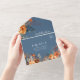Celebra tu amor con estilo con esta elegante invitación de boda todo en uno con RSVP incluido y con un impresionante ilustracion floral acuático en tonos otoño profundos sobre un elegante fondo azul polvoriento.