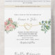 Elegante, moderno, florido y rosa invitación a una boda todo en uno con corazón de cuerda dorada, vegetación acuática, rosas y foto personalizado de la pareja al fondo. Añade tu foto, detalles del boda y rsvp.