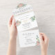Invitación Todo En Uno Elegante Boda floral Rubor rosa todo en uno