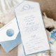 Invitación Todo En Uno Elegante Boda Monograma y acuarela azul