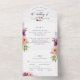 Invitación Todo En Uno Elegante Boda morado floral con RSVP Perforado