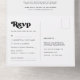 Un tema de moda retro: adoptar este diseño tipográfico algo vintage y de diseño para tu papelería boda, con una temática clásica en blanco y negro. Personalizable de texto, colores y fondos. Todo en uno: económico y ecológico, este sello y la invitación incluyen una postal RSVP.