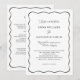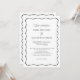 Celebre el amor eterno con esta invitación de boda en blanco y negro que presenta caligrafía elegante, fuentes serif refinadas y un ampersand grácil entre los nombres. La frase “Junto con sus familias” y “Solicitan el honor de su presencia” la hacen ideal para bodas formales en iglesia y ceremonias tradicionales de etiqueta negra. Un marco negro ondulado añade encanto moderno, mientras que el reverso incluye espacio para detalles y un código QR que enlaza con su sitio web de RSVP, perfecto para ahorrar en franqueo. Totalmente personalizable para adaptarse a su día, este diseño minimalista combina elegancia clásica con facilidad contemporánea.