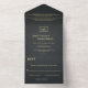 Invitación Todo En Uno Elegante Boda Rústico Del Monograma Negro Y Oro