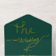 Esta elegante invitación de boda verde y dorada es perfecta para una boda moderna. el diseño simple presenta elegante caligrafía dorada sobre un fondo verde.