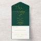 Invitación Todo En Uno Elegante Boda Simple Verde y Dorado Delicado